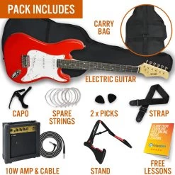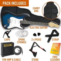 Also included within this pack is a gigbag for comfortable transportation, a spare set of strings, a capo, a guitar stand to display your instrument when not in use, a guitar strap, some plectrums and a cable to connect your guitar to the amp.