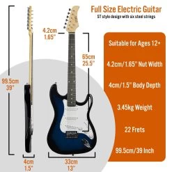 The 3rd Avenue Full Size Electric Guitar starter pack ensures to be an incredibly comprehensive pack which includes everything that a guitarist would want with their guitar. Aimed at beginners and built to a high-quality specification, this pack is excellent value for money as well as being very well made. Being a full-sized instrument, this pack is ideal for those aged 11 years old and above.