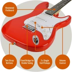 This electric guitar from 3rd Avenue features an ST-style body in a gloss finish with a contrasting white pickguard for a timeless look. While being designed for beginners and with value for money in mind, the quality has not been compromised on this instrument.