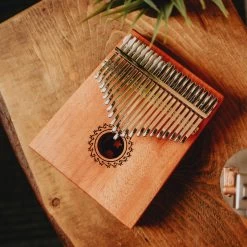 Carved from mahogany this thumb piano produces a soft, warm tone that will allow you to make beautiful melodic sounds.