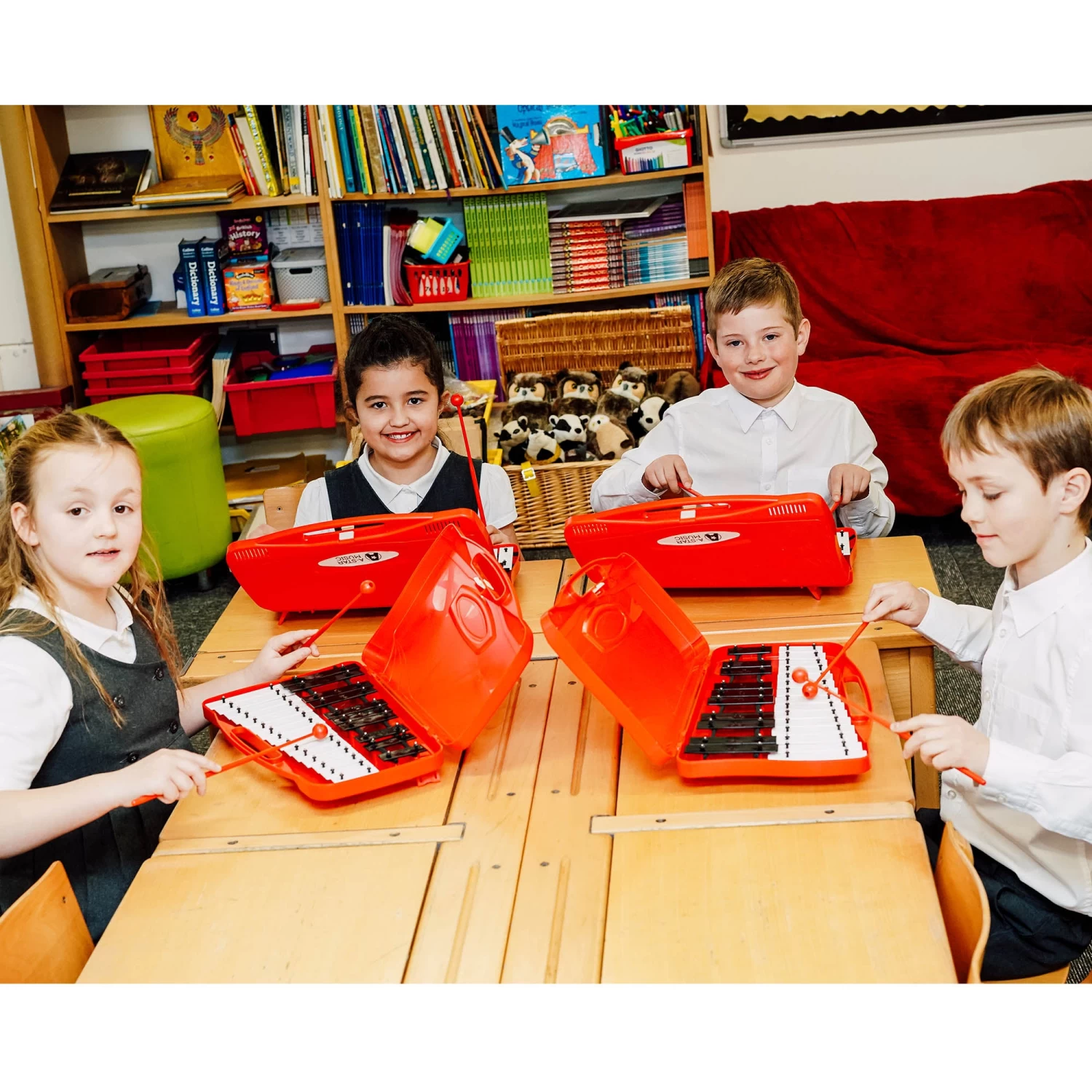 A-Star’s 25 Note Chromatic Soprano Glockenspiel comes in a protective carry case, making it perfect for the dynamic environment of the classroom. This 10-player class pack of 25-note glockenspiels ensures the whole class is involved. With a crisp and bright tone, the A-Star Soprano Glock is a great high-quality option at a fantastic value price. The beaters are included, so you’re ready to make music straight away.
