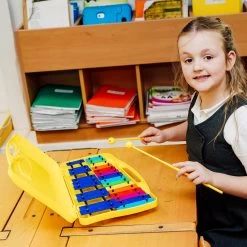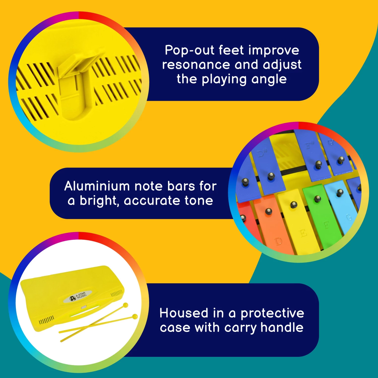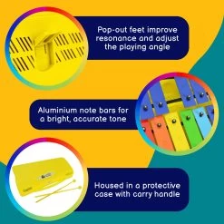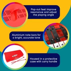 This large range allows for lots of variation in lessons and group activities. Supplied with 2 plastic beaters, the glockenspiel creates a bright tone and you are ready to make music straight away. Supplied in a handy case, the glockenspiel can be stored away easily without getting damaged. This protective case with pop-out feet is a great addition, making it perfect for the dynamic environment of the classroom.