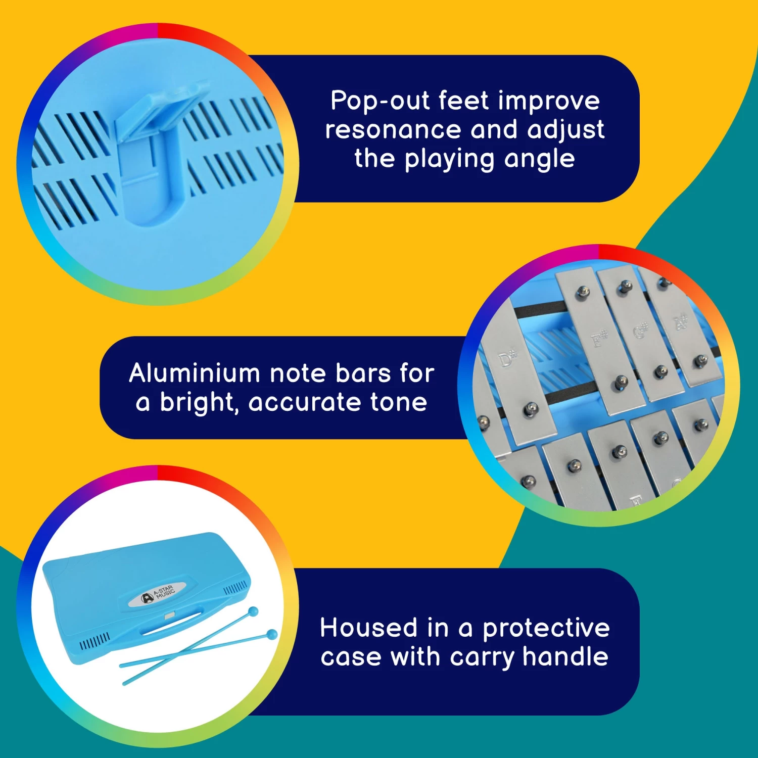 With a crisp and bright tone, the A-Star Soprano Glockenspiel is a high-quality tuned instrument at a fantastic price. The glockenspiel is 2 octaves of chromatic notes and is set out like a piano, which will be a familiar starting point when learning music. The notes are also labelled which is great for beginners.