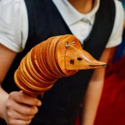 - Wooden clapper shaped in an animal design (also known as a kokiriko or pocket rattle)