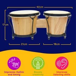 The A-Star Bongos are made of solid wood and have 8 and 7 inch heads covered with natural skin. Tuneable tension struts allow you to modify the tone to suit your style and performance.