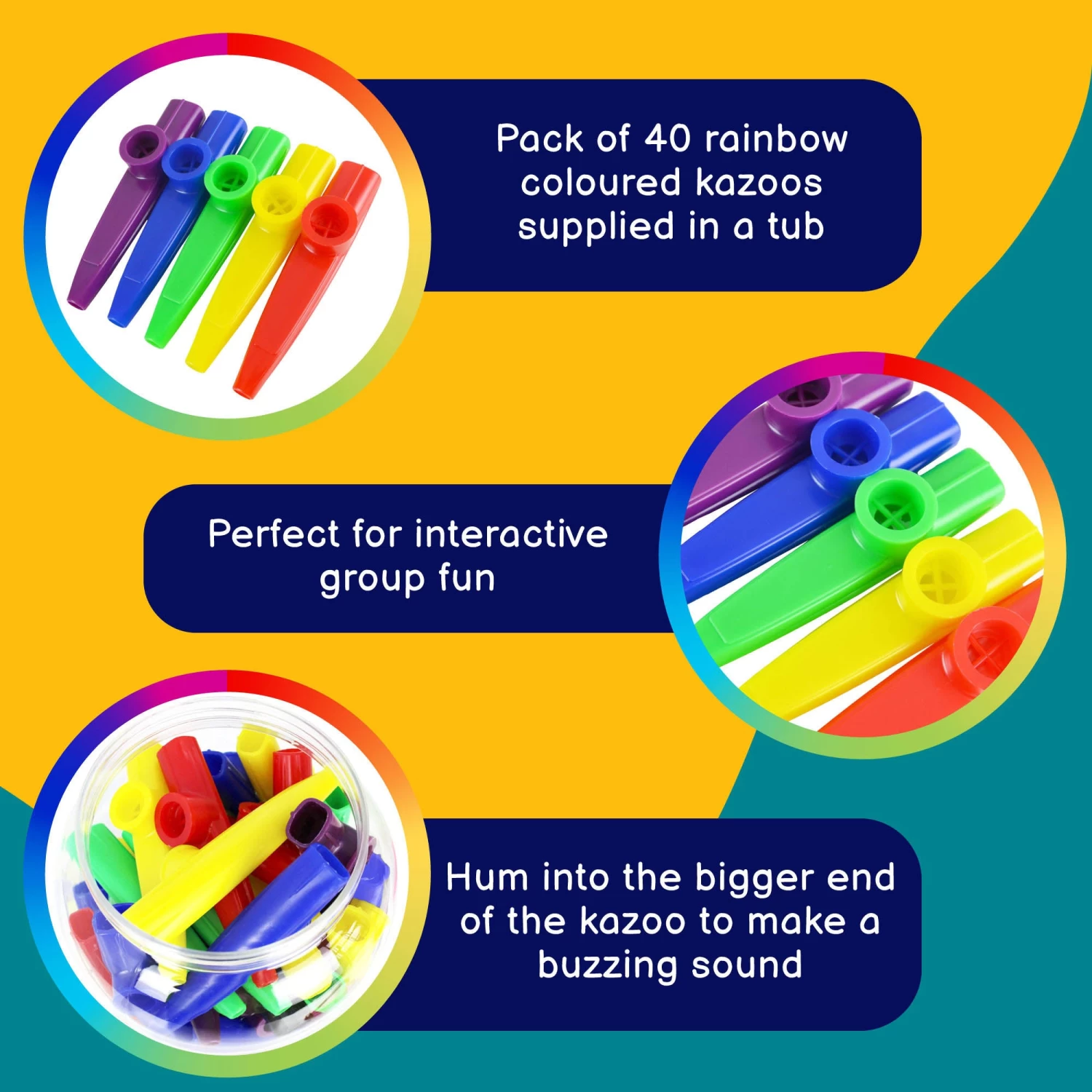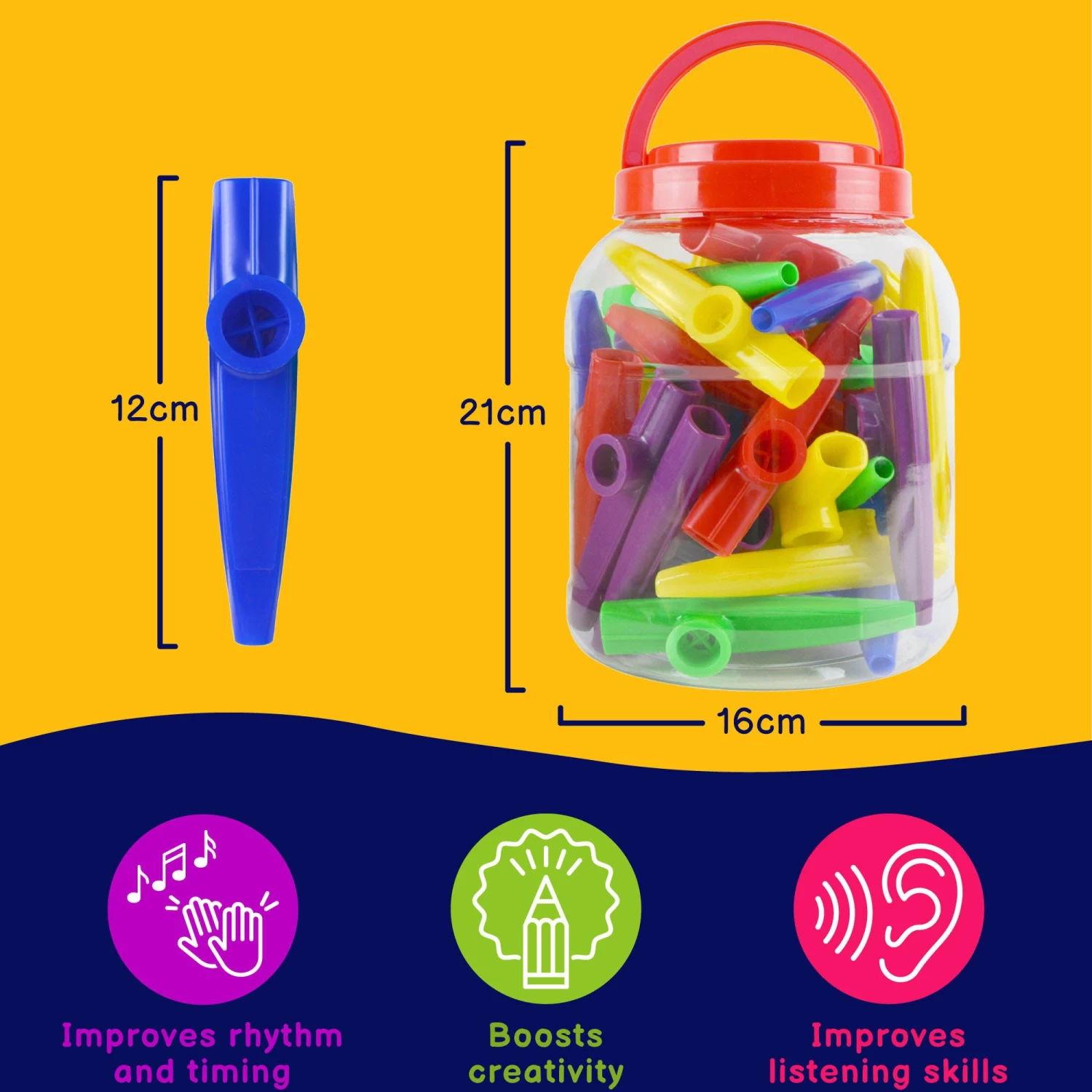 Have lots of fun with these fantastic colourful kazoos. Easy to play, these are great for parties and classroom activities. Made from durable plastic in a one-piece construction design, they project a clear loud tone.