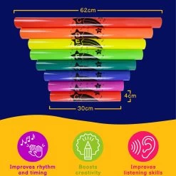 - Set includes 8 sound tubes – C, D, E, F, G, A, B, and High C