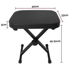 This keyboard bench is ideal for use when playing the keyboard or piano. The X-frame is fully height adjustable and comes with a 5mm padded seat.