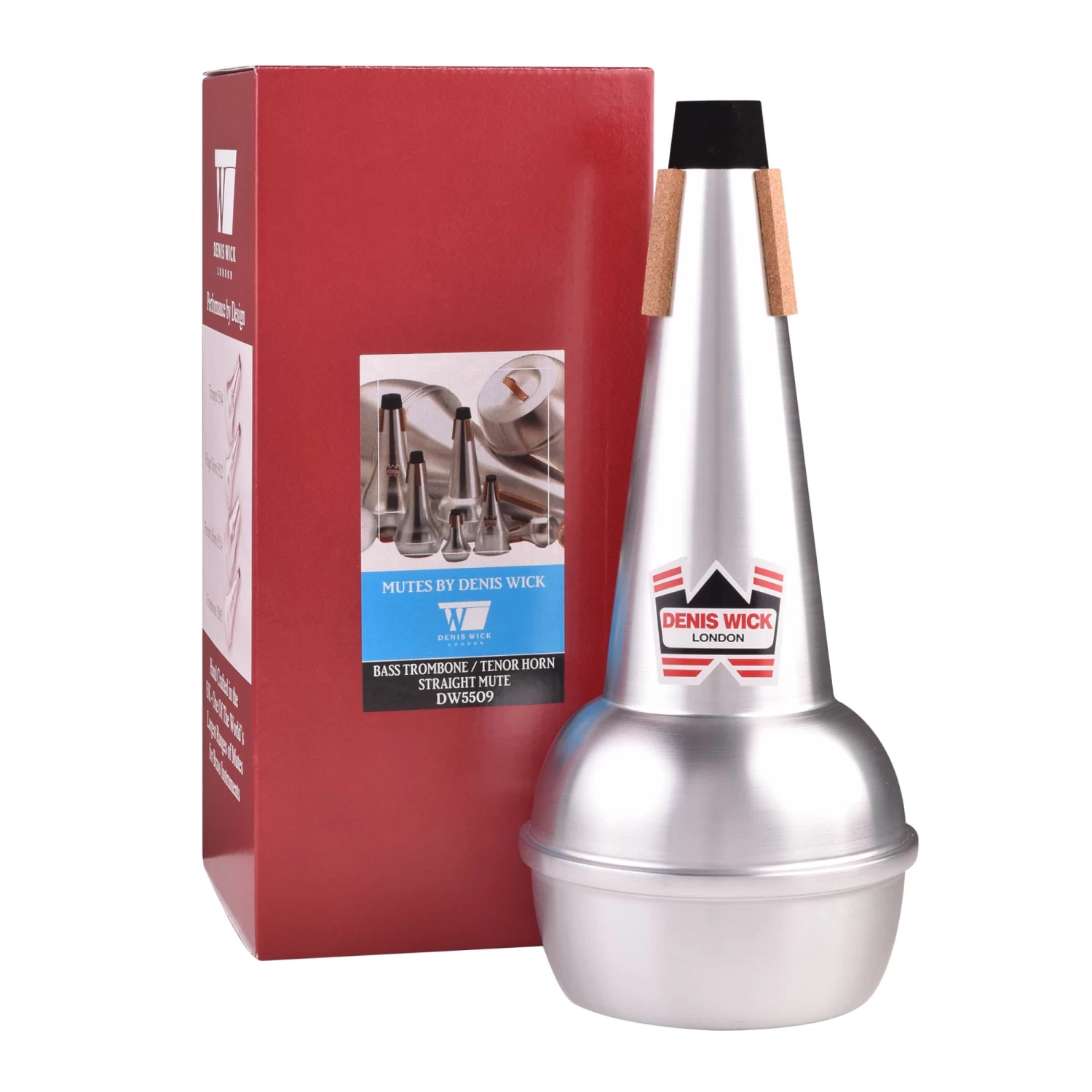 Denis Wick 5509 Straight Mute for Bass Trombone or Tenor Horn, made from high purity aluminium for strength and durability. Suitable for all Bass Trombones or Tenor Horn, offering accurate intonation and consistent tonal projection. Handmade in the UK with silver anodised Scotchbrite/brushed finish.