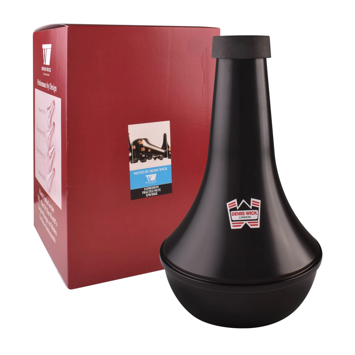 Denis Wick 5512 Practice Mute for Euphonium, black polyester coated aluminium with neoprene seal. Suitable for all Euphoniums, offering accurate intonation and consistent resistance to improve, strengthen and develop embouchure and stamina. Reduces the sound produced to near silence while retaining stable pitch, ideal for practising at any time of the day.