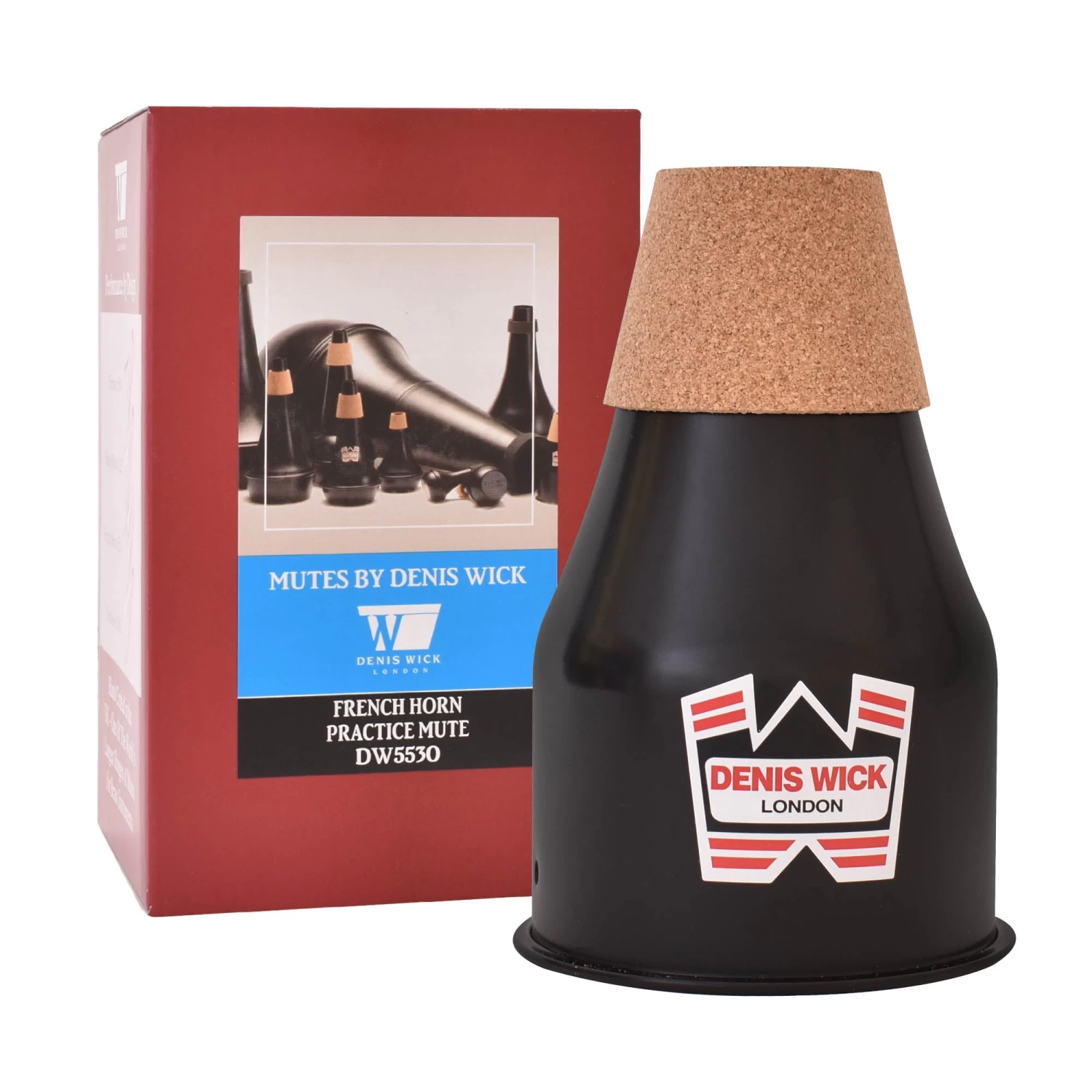 Denis Wick 5530 Practice Mute for French Horn, black polyester coated aluminium with full circumference cork fitting. Suitable for all French Horns, offering accurate intonation and consistent resistance to improve, strengthen and develop embouchure and stamina. Reduces the sound produced to near silence while retaining stable pitch, ideal for practising at any time of the day.