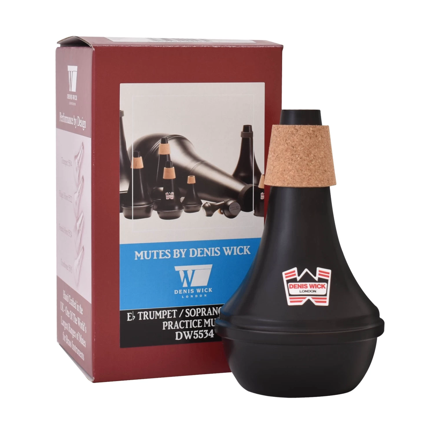 Denis Wick 5534 Practice Mute for Soprano Cornet or Eb/D Trumpet, black polyester coated aluminium with with full circumference cork fitting. Suitable for all Soprano Cornets or Eb/D Trumpets, offering accurate intonation and consistent resistance to improve, strengthen and develop embouchure and stamina. Reduces the sound produced to near silence while retaining stable pitch, ideal for practising at any time of the day.