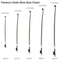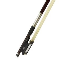 Student violin bow with natural horse hair, ebony frog and double pearled eyes. This violin bow is perfect for the beginner / student who is used to the weight of a wooden bow and still wants great quality on a budget. Made using a high quality Brazil wood, it’s both strong and durable. An ebony frog with double pearled eyes gives the bow a classic look and the natural horse hair used on the bow has been specially selected to give just the right amount of resistance while playing. Available in Full size, 3/4, 1/2, 1/4 and 1/8th sizes.