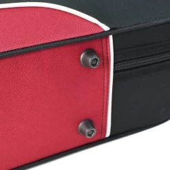 A lightweight case with a lined and shaped plush interior to protect your instrument from scuffs and scratches. It has a pocket compartment for your rosin and accessories while a carrying strap and handle make it perfect for students on the go! Red and black exterior with fluorescent safety flashes and dark blue interior. Available in 4/4, 3/4, 1/2 and 1/4 sizes.