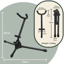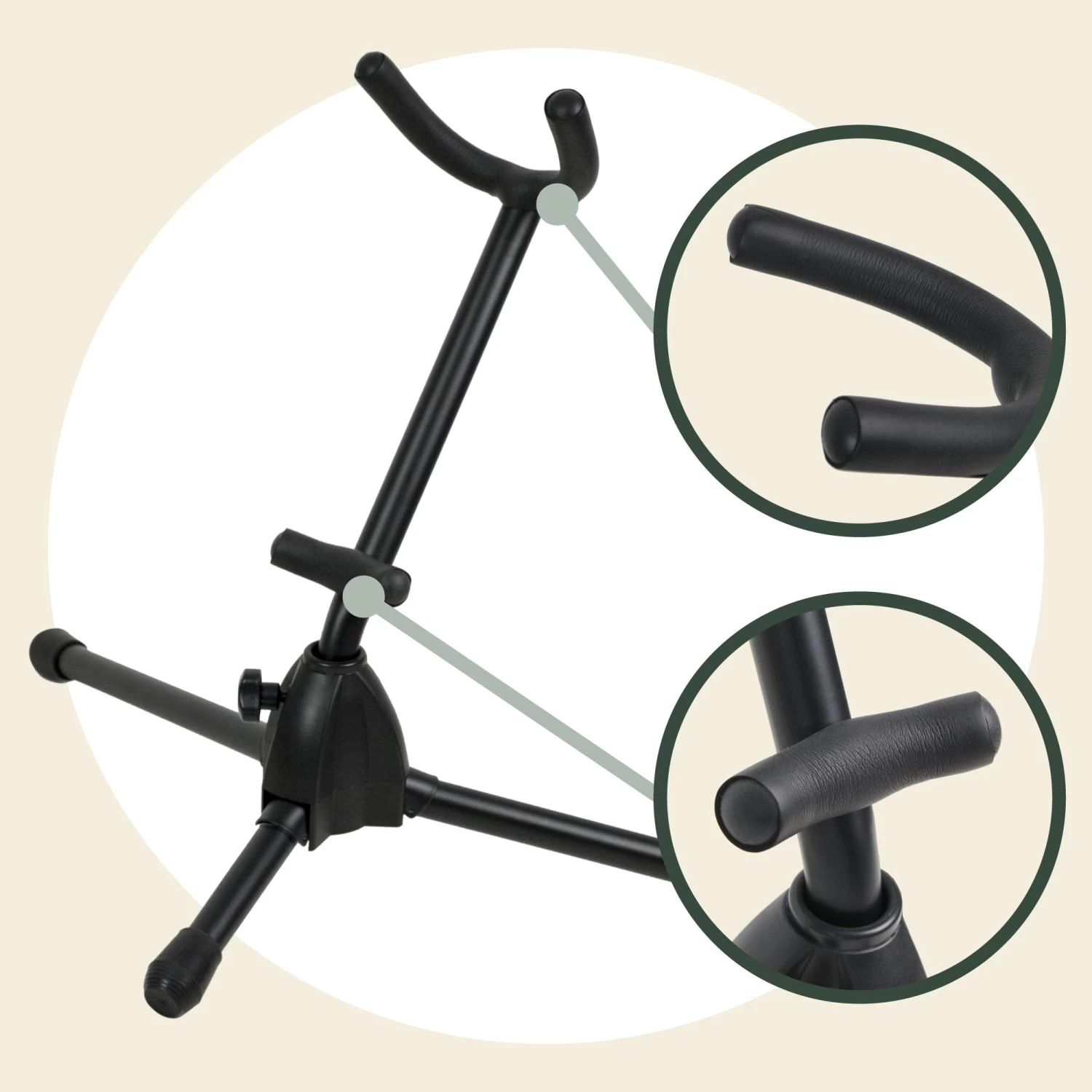 Affordable and sturdy, this stand will protect your saxophone. The padded arms protect the instrument from any scratches and the non-slip rubber feet on the tripod base provide extra stability. Make a feature out of your beautiful instrument and have it on display with the help of this stand!