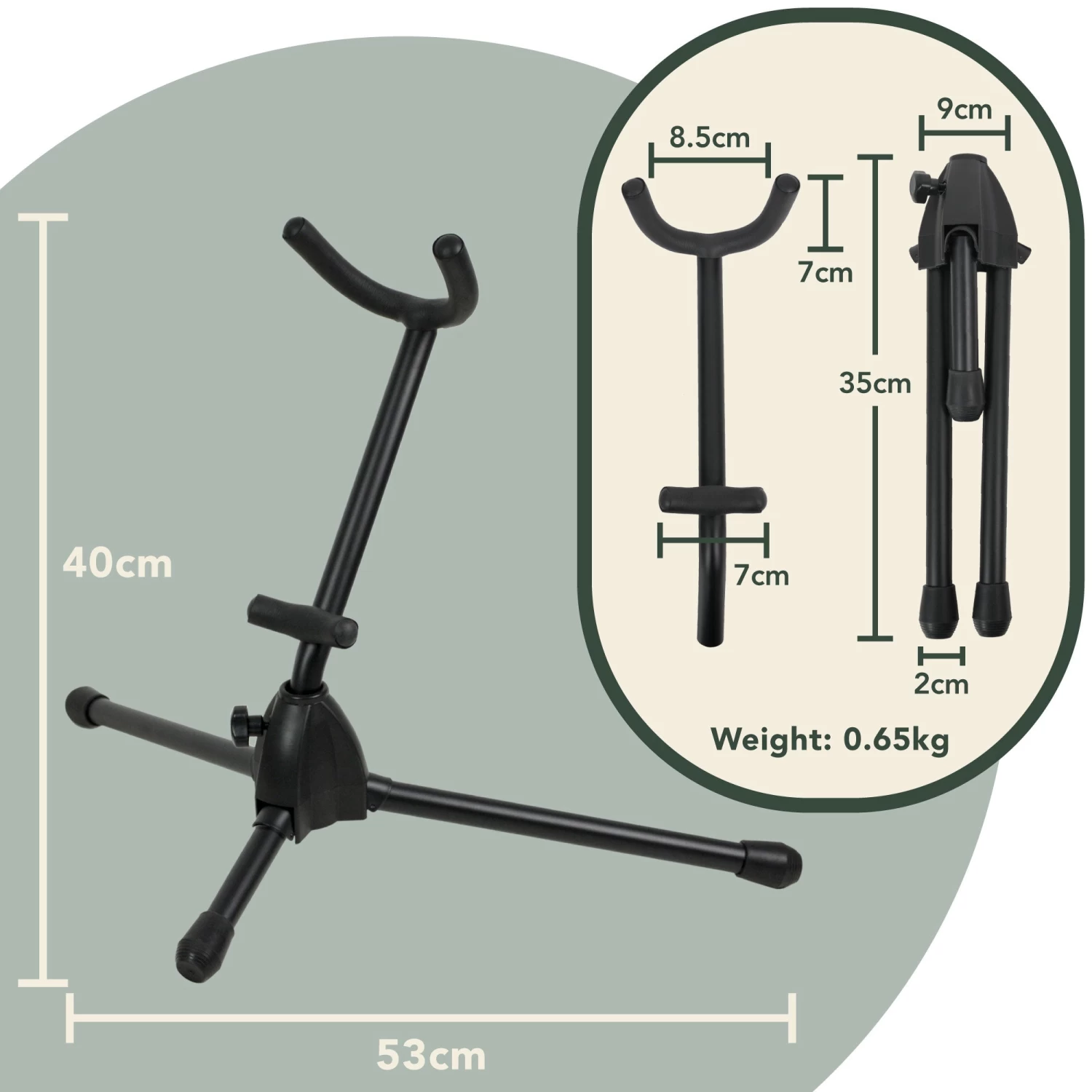 The rubber feet ensure a strong grip on most surfaces and padded arm rests hug the body of the saxophone and guarantee safe storage of your saxophone, avoiding scuffs or scratches. At just 650g, this lightweight stand offers support and security for your saxophone when you are finished playing.