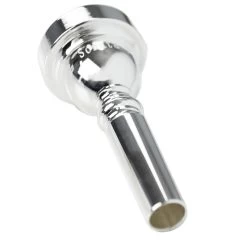 Silver-plated tenor horn mouthpiece designed to produce a powerful tone.