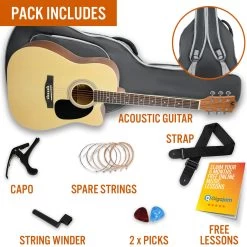 Fitted with strap buttons on the end pin and heel, you can attach the included strap to elevate your playing position. In addition, you have a padded bag with an accessory pocket, enabling you to keep the MX202 safe at all times and keep all your necessary extras in one place. You also get a spare string set, string winder, trigger capo and picks.