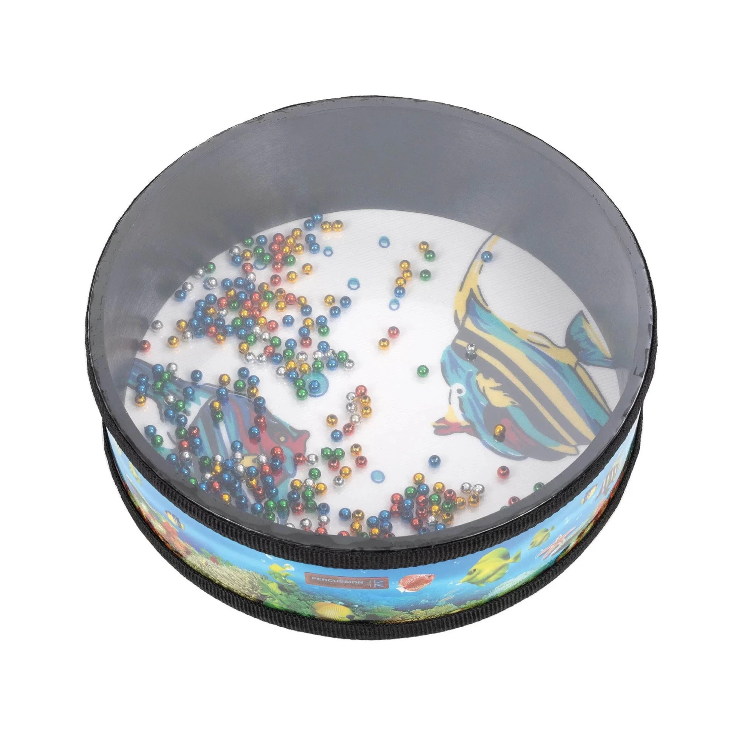 The Percussion Plus 10-inch Ocean Drum is a versatile and captivating percussion instrument that replicates the soothing sounds of ocean waves. With a diameter of 10 inches, this drum features a transparent synthetic head on one side, allowing you to see the small metal beads inside. These beads create a gentle, rolling sound reminiscent of the ocean when the drum is tilted or shaken.