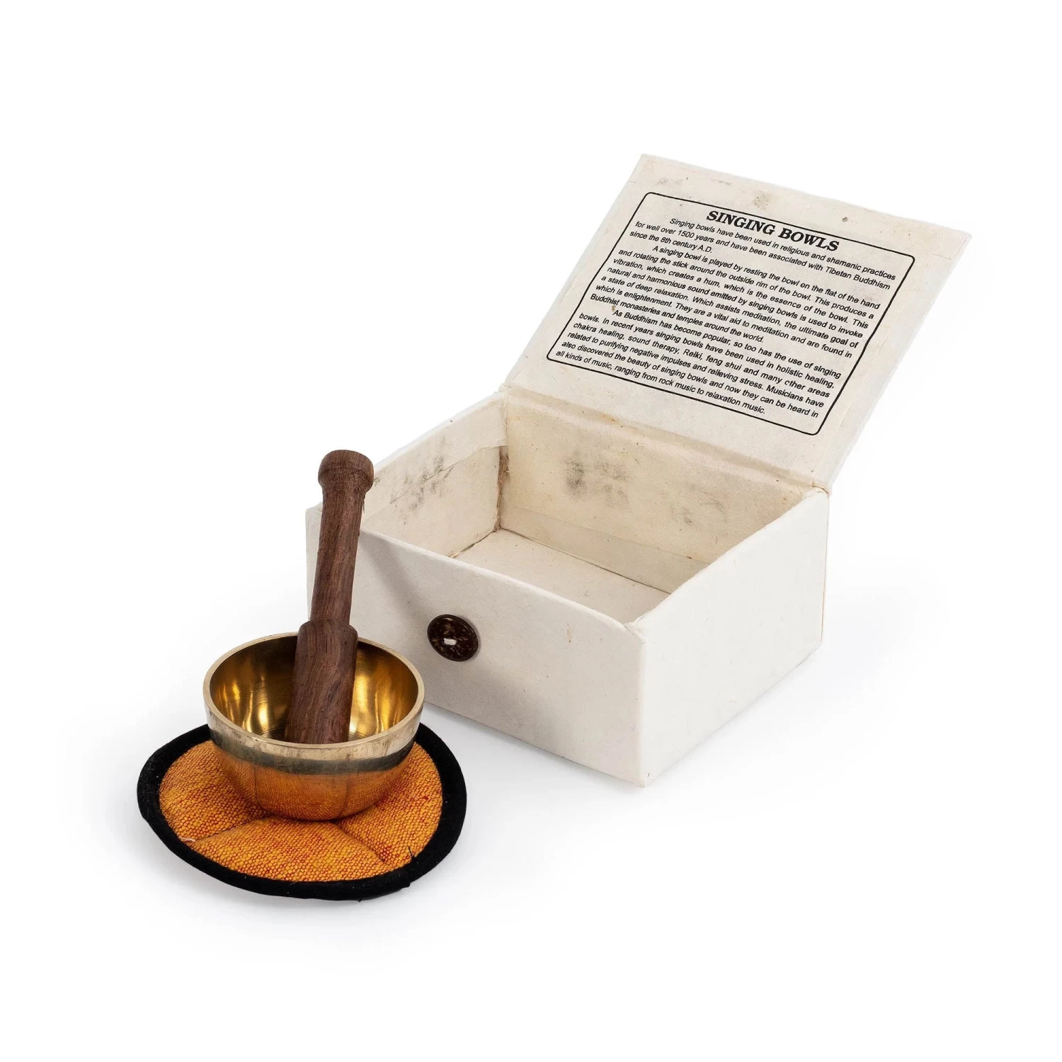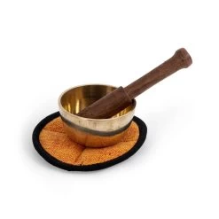 Made from a combination of high-quality metals, such as copper and tin, the bowl is meticulously handcrafted to produce a unique and enchanting sound. When struck or played with a wooden mallet, the bowl emits a resonant and soothing tone that carries a meditative quality.