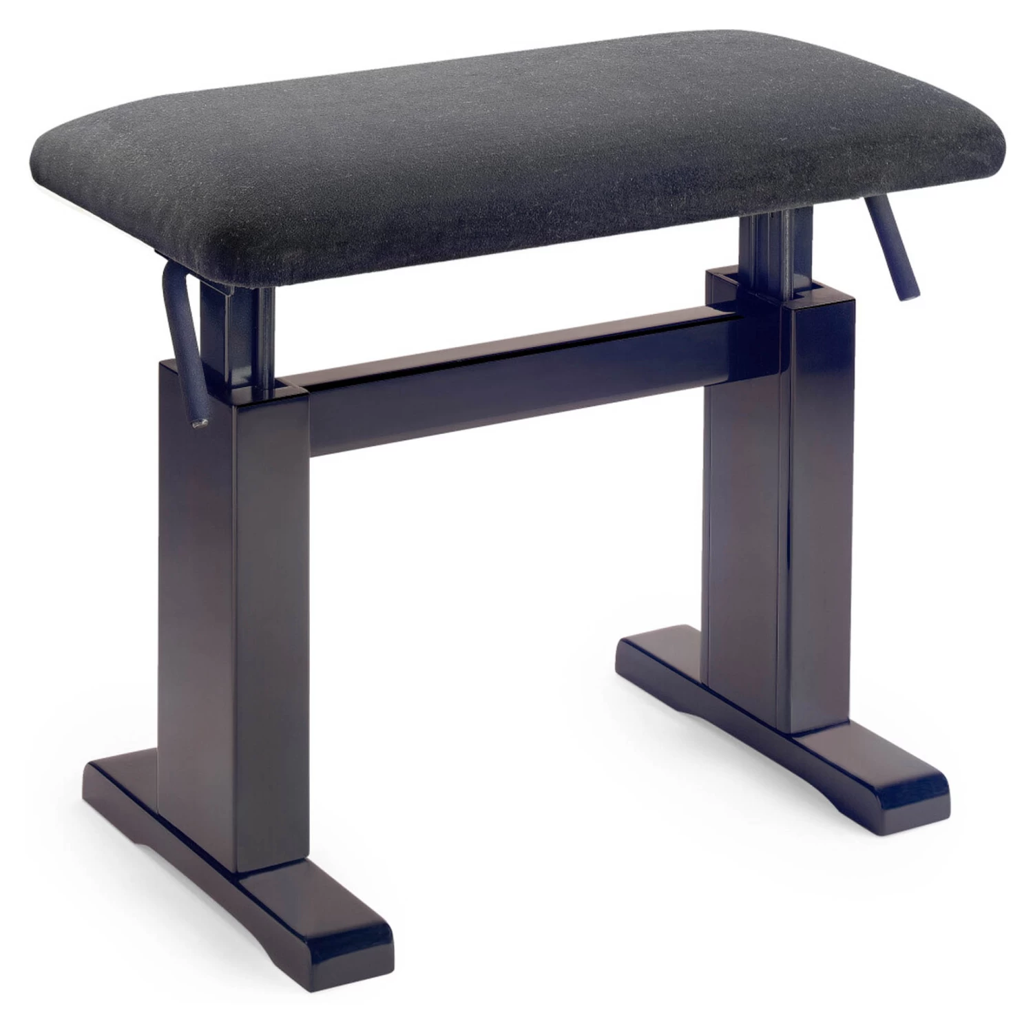 Hydraulic piano bench in a matt rosewood finish with a fireproof black velvet top.