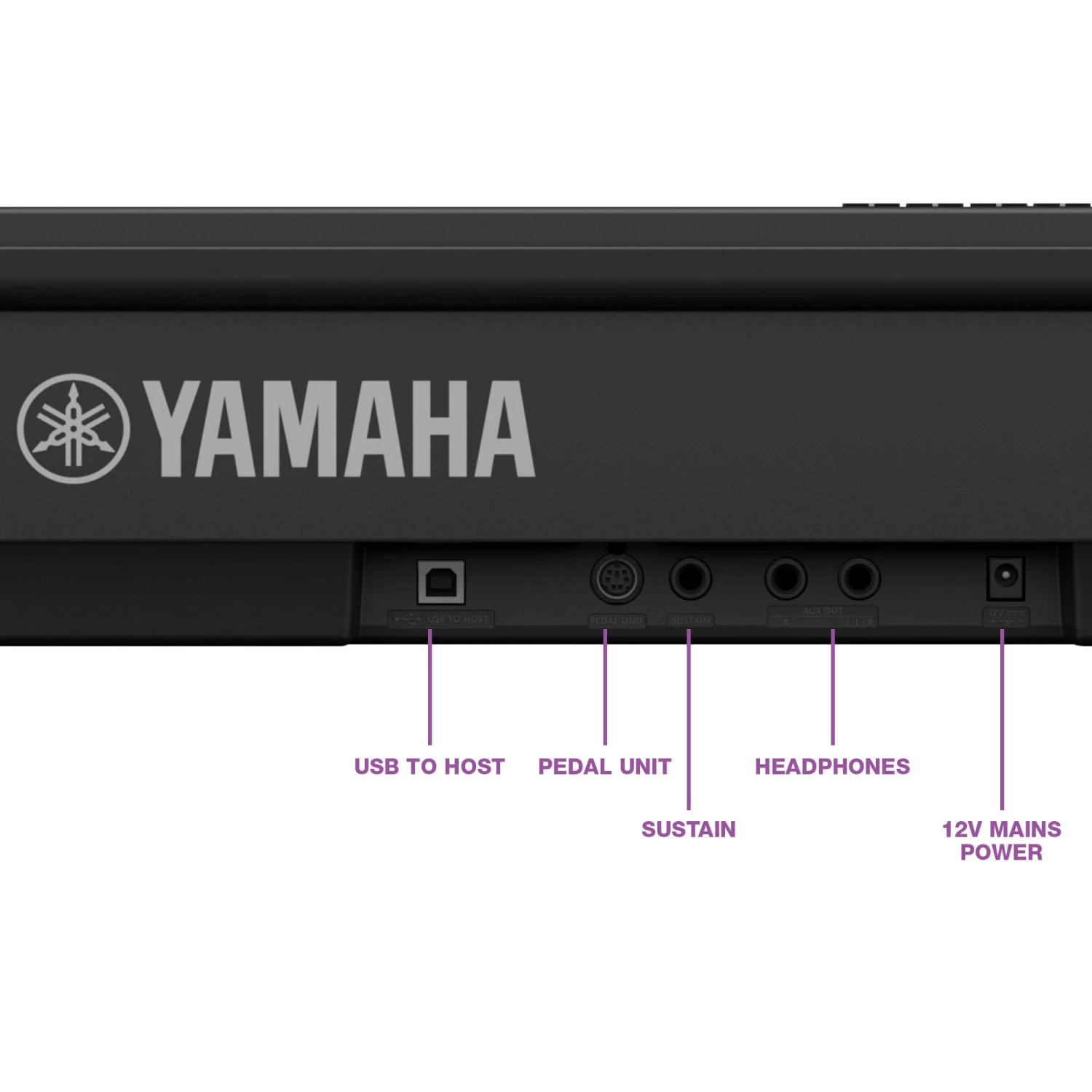 - Supplied with music rest, mains power adaptor, pedal/footswitch